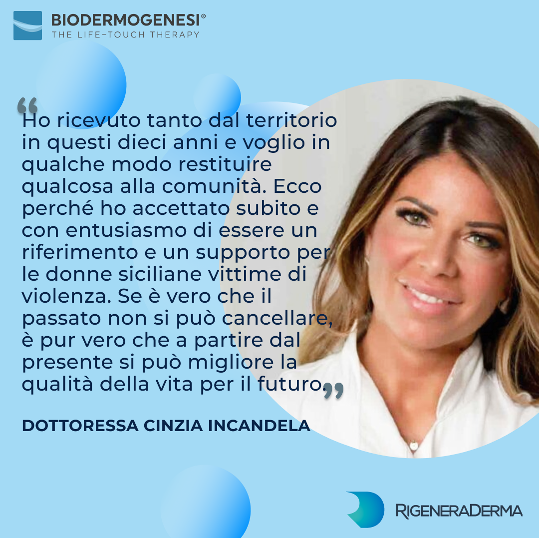 Lo studio medico di Cinzia Incandela, specialista in medicina estetica a Palermo, diventa il centro di riferimento in Sicilia per RigeneraDerma, il progetto nazionale che offre la cura gratuita delle cicatrici a 500 donne che hanno subito violenza e che non possono permettersi un intervento di chirurgia estetica.
